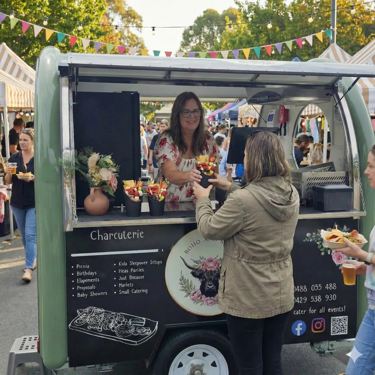 Introducing our beautifully styled charcuterie van. From savoury to sweet, fresh to indulgent, every bite is hand-selected by you. Ideal for weddings, parties, markets, and corporate events, the van offers a fun and interactive experience where flavour meets freedom. Let your guests graze, explore, and enjoy their favourites—because every palate deserves a personalised plate.